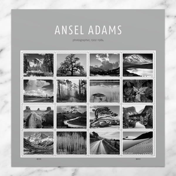 - This sheet of 16 stamps features some of his most famous images in his signature “straight photography” style, an approach defined by its precision and directness.
