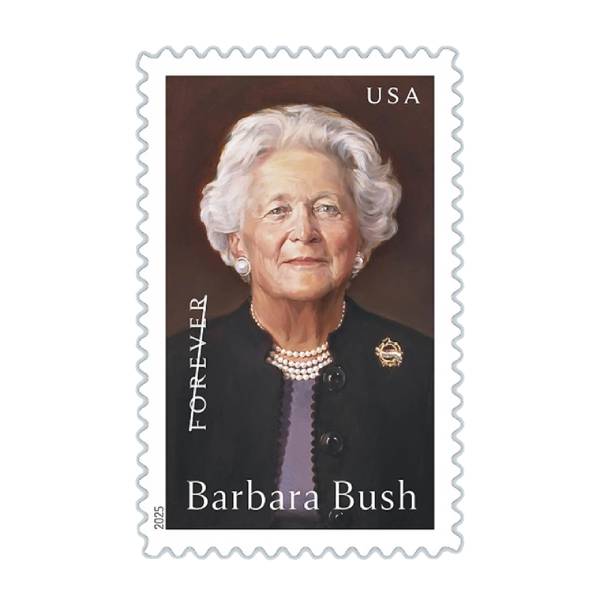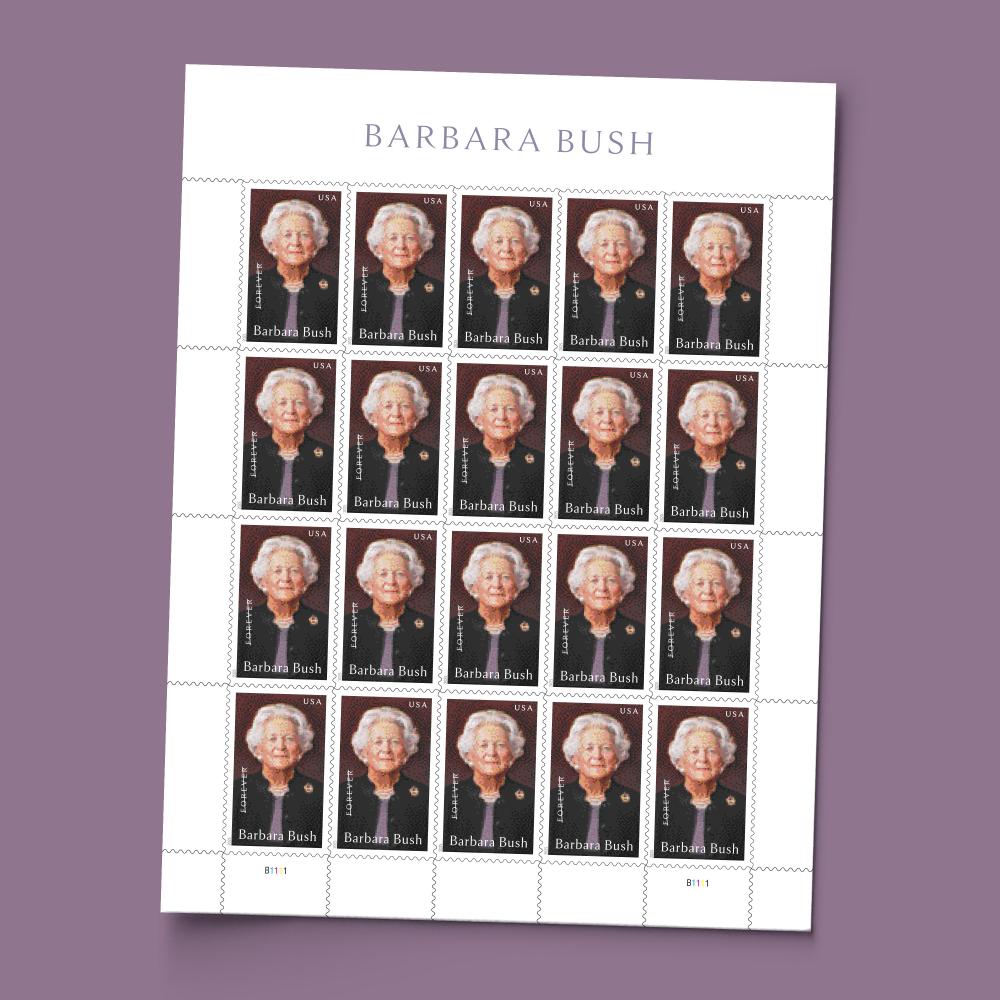 Honor the life and legacy of former first lady Barbara Bush (1925–2018), wife of the 41st president, George H. W. Bush, first lady of the United States from 1989 to 1993, and mother of the 43rd president, George W. Bush. The matriarch of one of the most successful political families in U.S. history, Mrs. Bush was a tireless advocate for literacy, while her plainspoken style and sharp sense of humor drew bipartisan respect around the country. The Barbara Bush stamp art features a detail from the official 2005 White House oil-on-canvas portrait of Mrs. Bush by Chas Fagan.