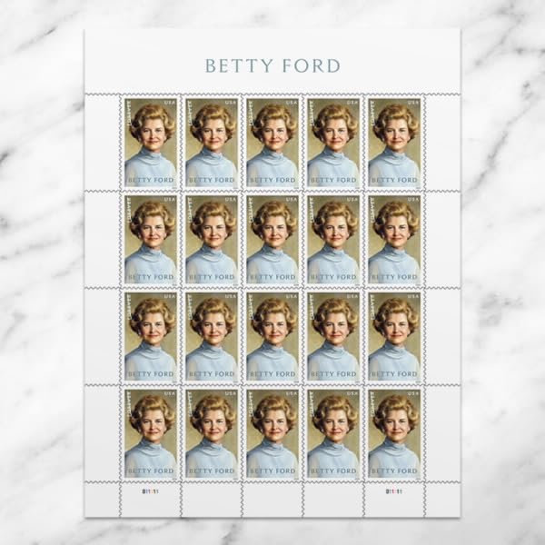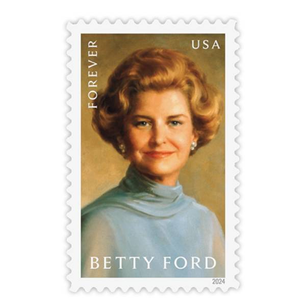 - With this stamp, the U.S. Postal Service celebrates the life of Betty Ford (1918–2011), wife of the 38th president, Gerald R. Ford, and first lady of the United States from 1974 to 1977. As first lady, Mrs. Ford won widespread admiration for her candor and support for women’s rights. Later, she courageously disclosed her battles with breast cancer and substance use disorder.