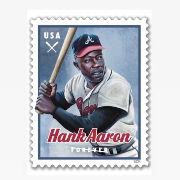 - Honor the life and legacy of a baseball legend with this Hank Aaron stamp.