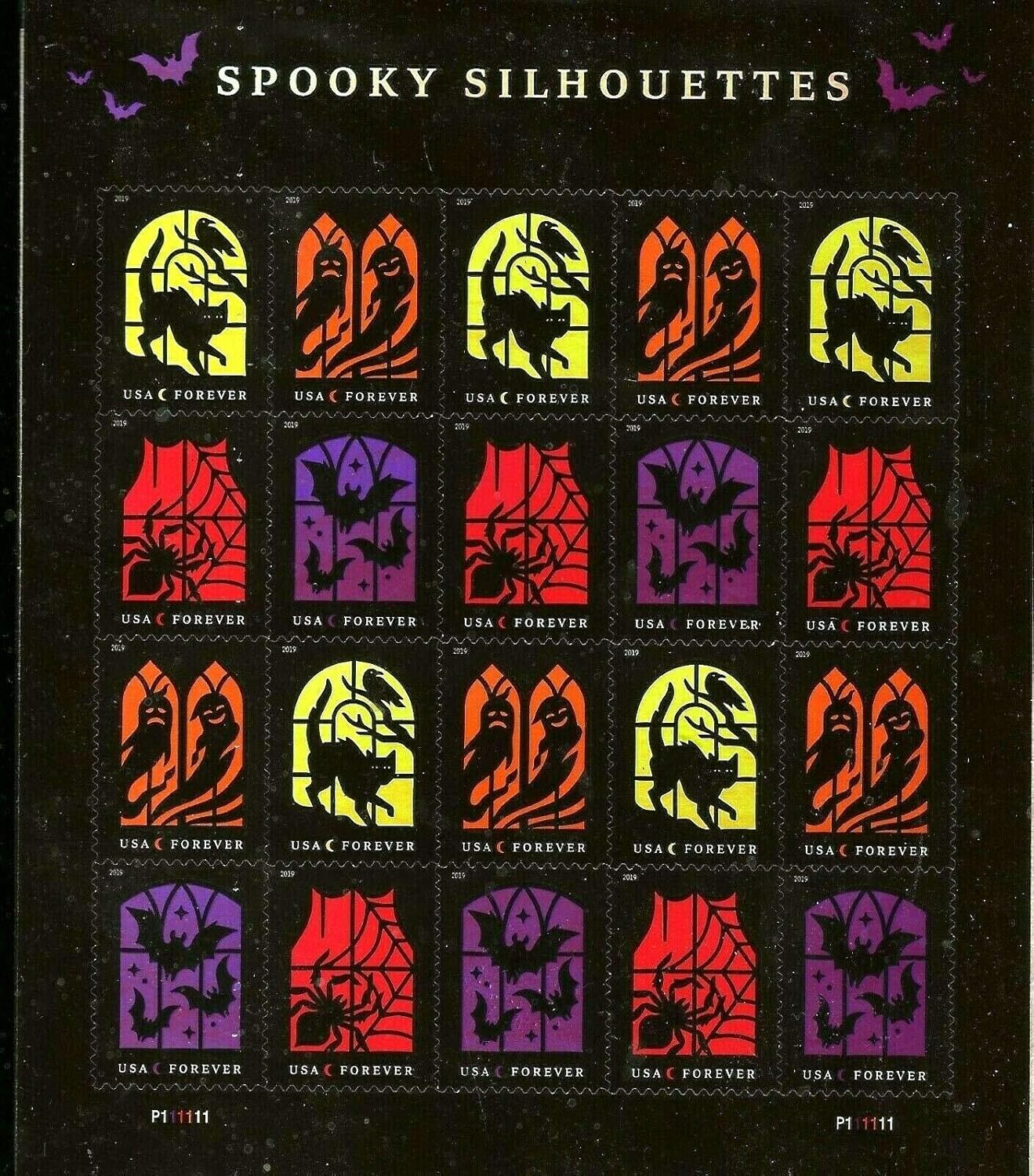 - Spooky Silhouettes stamps feature digital illustrations with Halloween motifs rendered as black silhouettes in eerily backlit windows