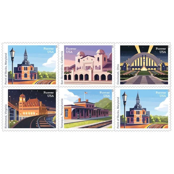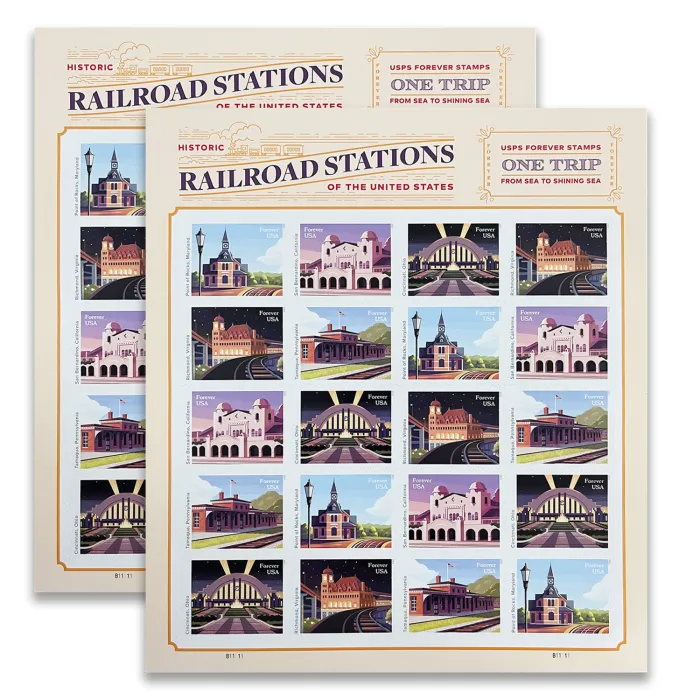 🎁【US Free Shipping】100 PCS-2023 Railroad Stations Press Sheet with Die- Cuts